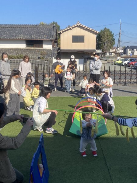 とても晴天☀️ですので、参加していただきましたご家族の方と共に、ミニ運動会⁉️もっとミニかな。先生方がミニミニ運動会を準備してくれておりまして、少しの時間ではありましたが入場行進から、体操、ひよこさんたち、うさぎさんたち、ぱんださんたちの項目にみんなが加わり、それぞれ楽しむことができました😊